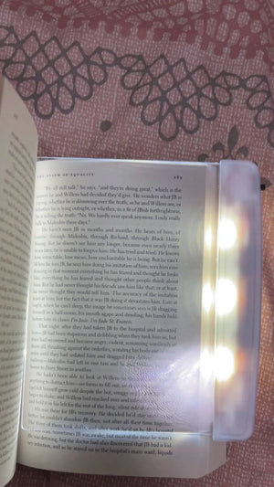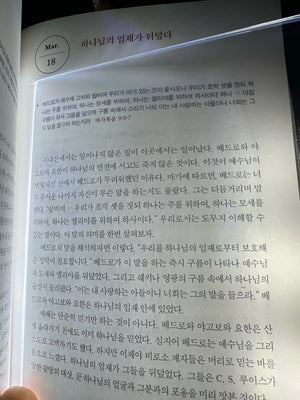 The transparent panel spreads warm LED light evenly across the page, eliminating hotspots and stray beams so the light stays focused on your book and not the room.